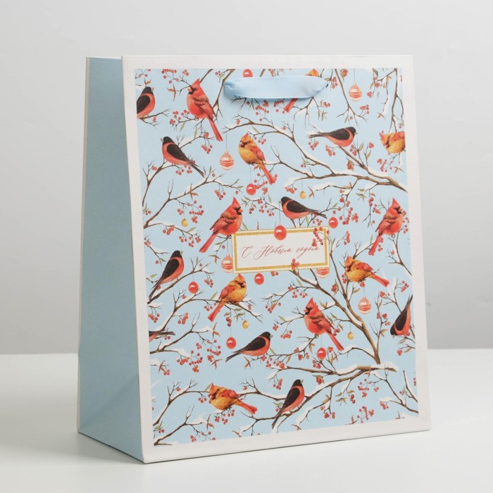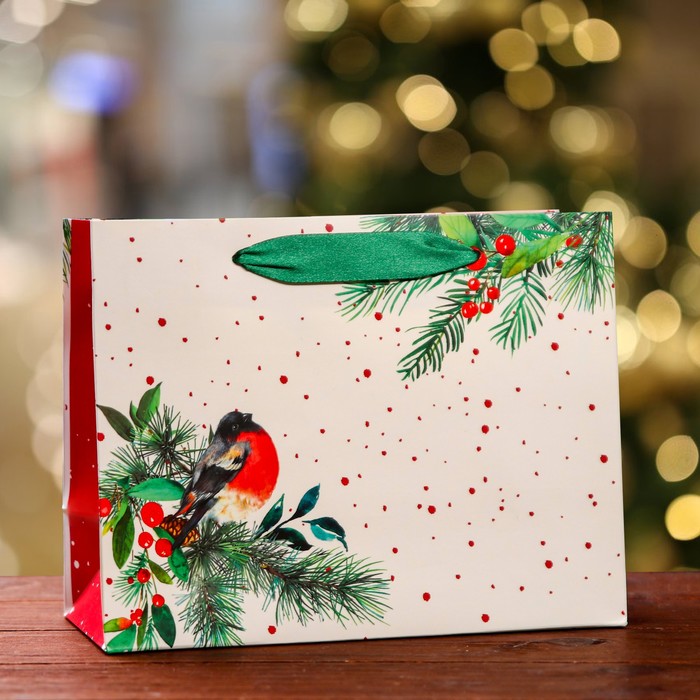 Пакет подарочный "Снегирь на праздник ", 23 х 17,8 х 9,8 см
