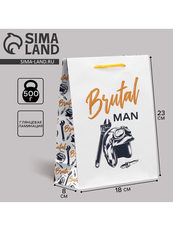 Пакет подарочный ламинированный, упаковка, Brutal man, MS, 23 х 18 х 8 см