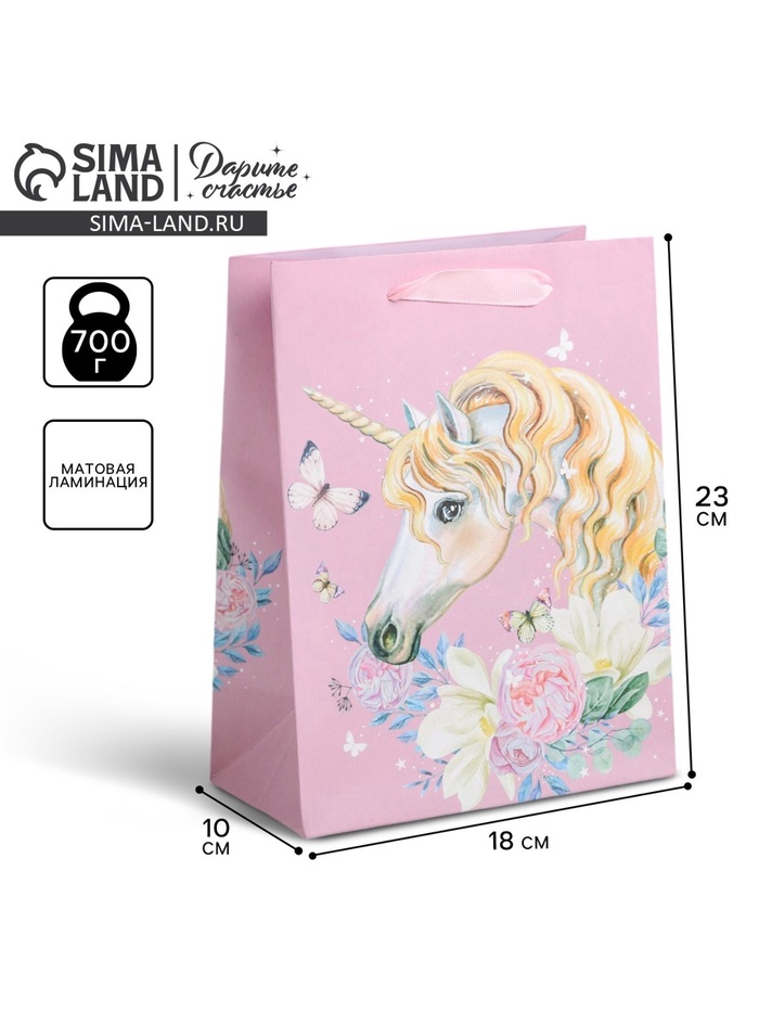 Пакет подарочный ламинированный, упаковка, «Единорог»», MS 18 х 23 х 10 см