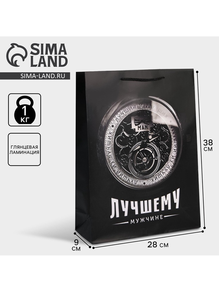 Пакет подарочный ламинированный, упаковка, «Лучшему мужчине», L 28 х 38 х 9 см