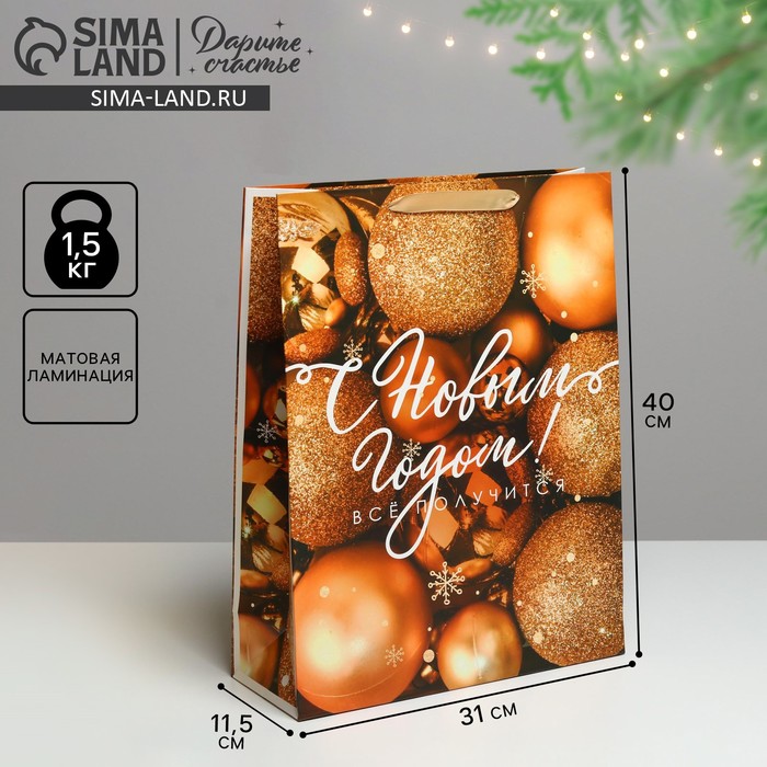 Пакет подарочный новогодний ламинированный «Всё получится!», L 31 х 40 х 11.5 см