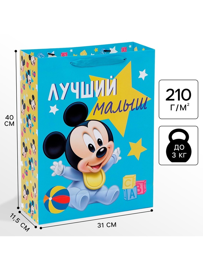 Пакет подарочный «Лучший малыш», 31 х 40 х 11.5 см, упаковка, Микки Маус