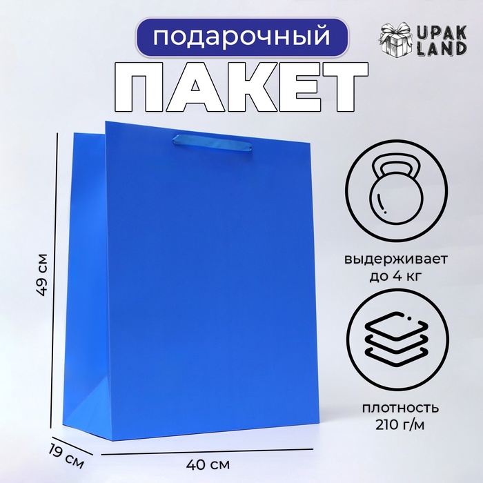Пакет подарочный ламинированный вертикальный «Синий», XL 40×49×19 см