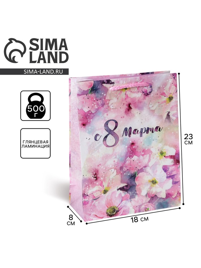 Пакет подарочный ламинированный, упаковка, «С 8 марта», MS 18 х 23 х 8 см