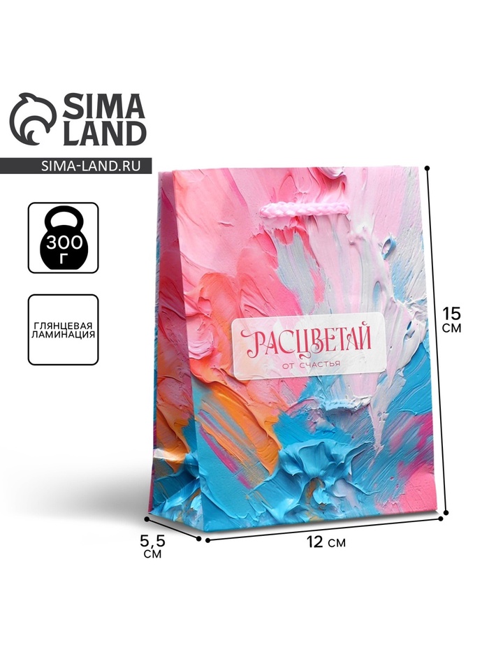 Пакет подарочный ламинированный, упаковка, «Счастье», S 12 х 15 х 5.5 см