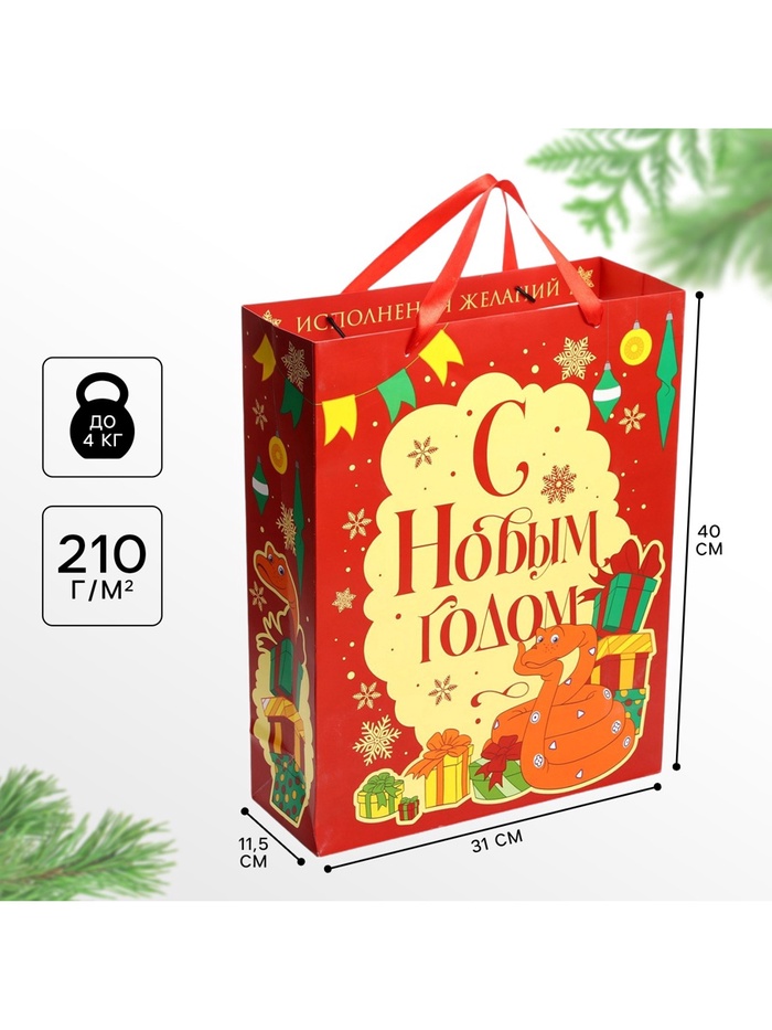 Пакет подарочный новогодний 31 х 40 х 11.5 см, Символ года 2025, 38 попугаев