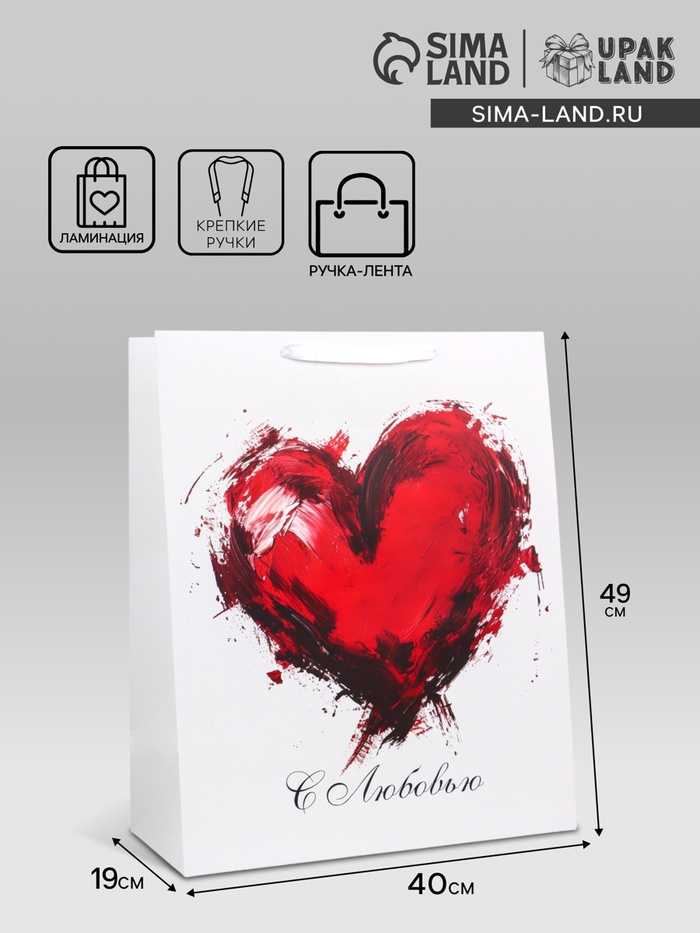 Пакет подарочный ламинированный вертикальный «С любовью», XL 40×49×19 см