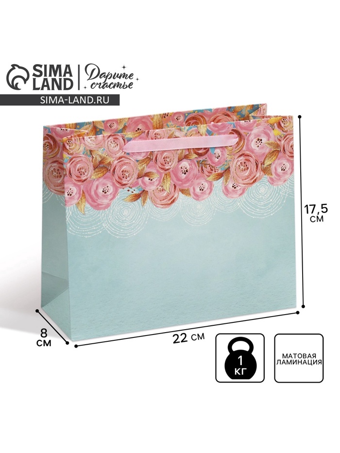 Пакет подарочный ламинированный, упаковка, «Нежность», 22 х 17.5 х 8 см