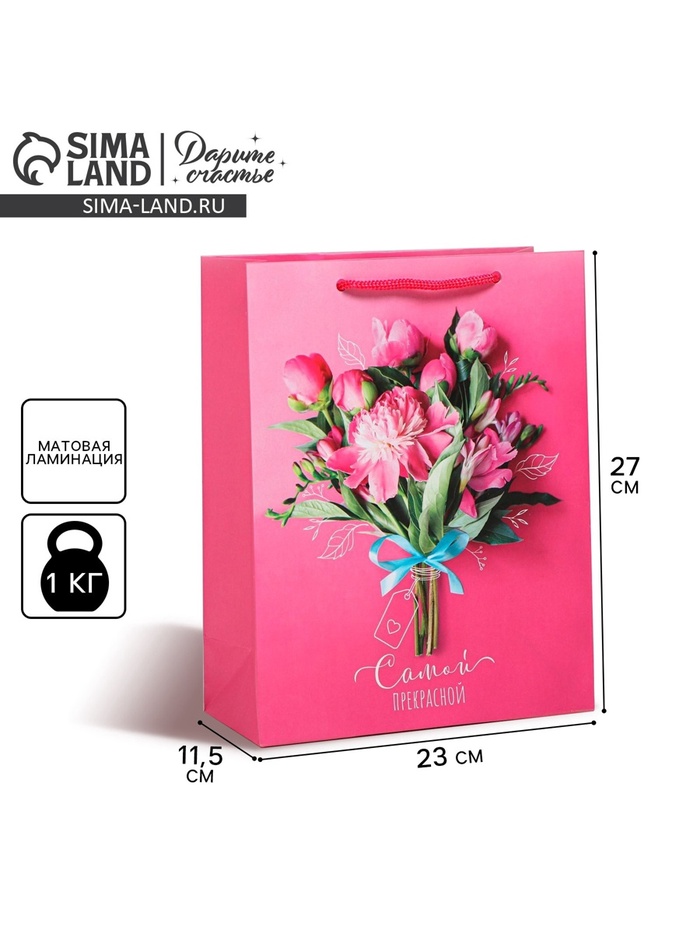 Пакет подарочный ламинированный, упаковка, «Самой прекрасной», ML 23 х 27 х 11.5 см