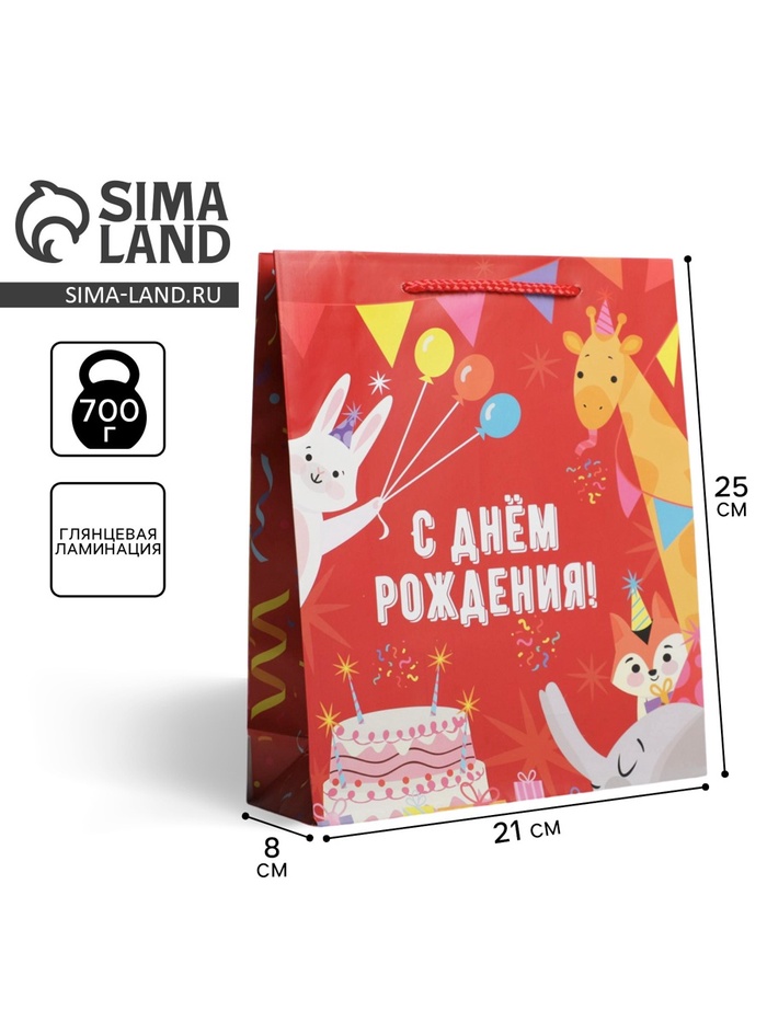 Пакет подарочный ламинированный, упаковка, «С Днем Рождения», ML 21 х 25 х 8 см
