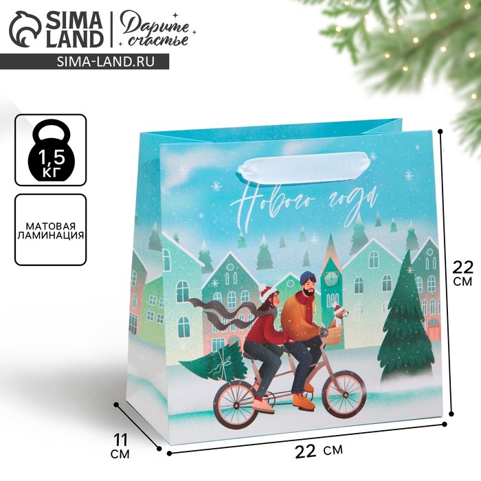 Пакет подарочный новогодний ламинированный квадратный «Счастья в Новом году», 22 х 22 х 11 см