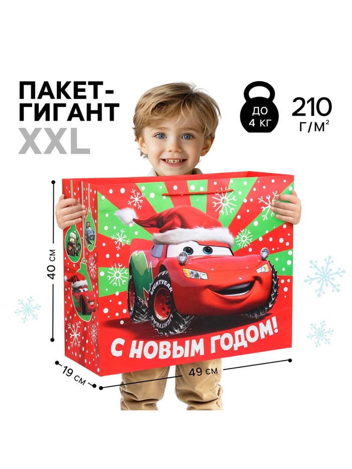 Пакет подарочный «С Новым годом!», 40×49×19 см, упаковка, Тачки