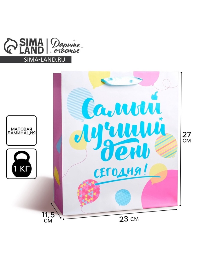 Пакет подарочный ламинированный, упаковка, «Самый лучший день сегодня!», ML 23 х 27 х 11.5 см