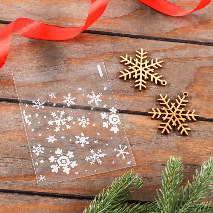 Пакет БОПП с липкой лентой, «Снежинки», 10×10+3 см