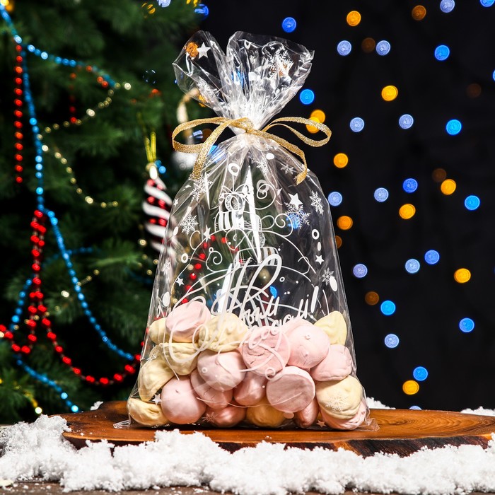 Пакет полиэтиленовый подарочный "Новогодние подарки", с завязками, 15*23см.
