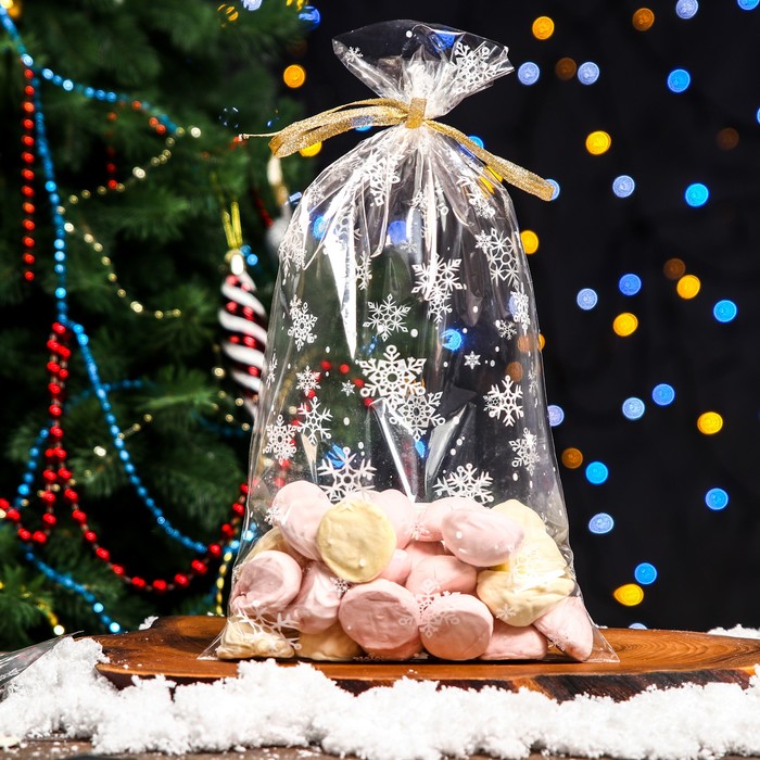Пакет фасовочный БОПП, с новогодним рисунком «Снег», 20×35 см