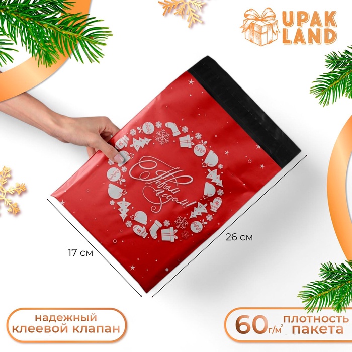 Курьерский пакет с клеевым клапаном новогодний, «С Новым годом», 17×26 см