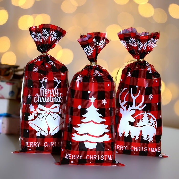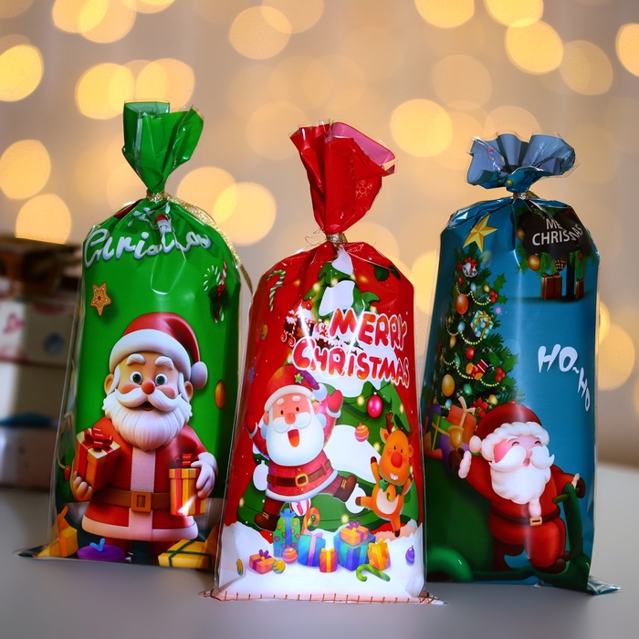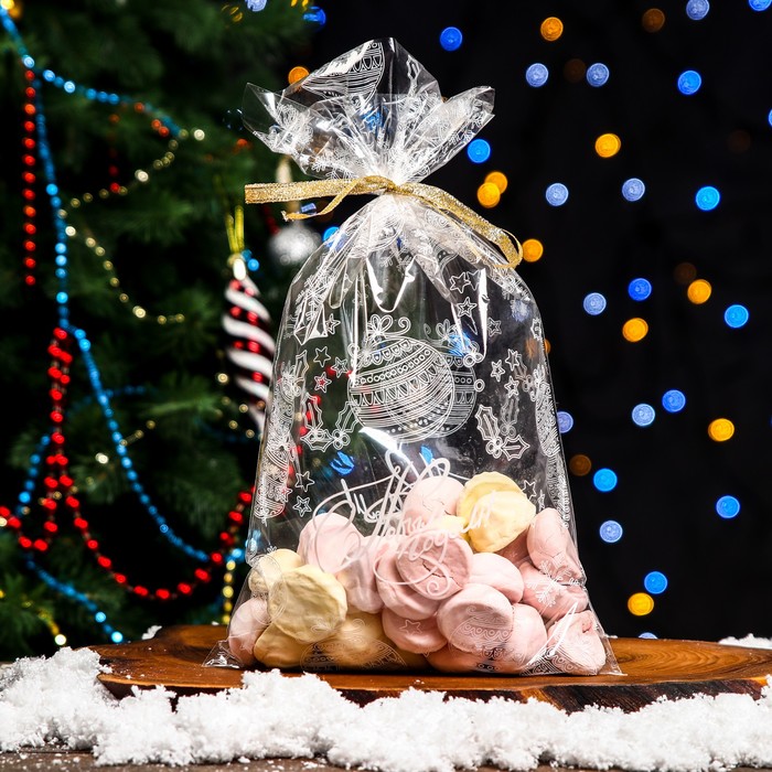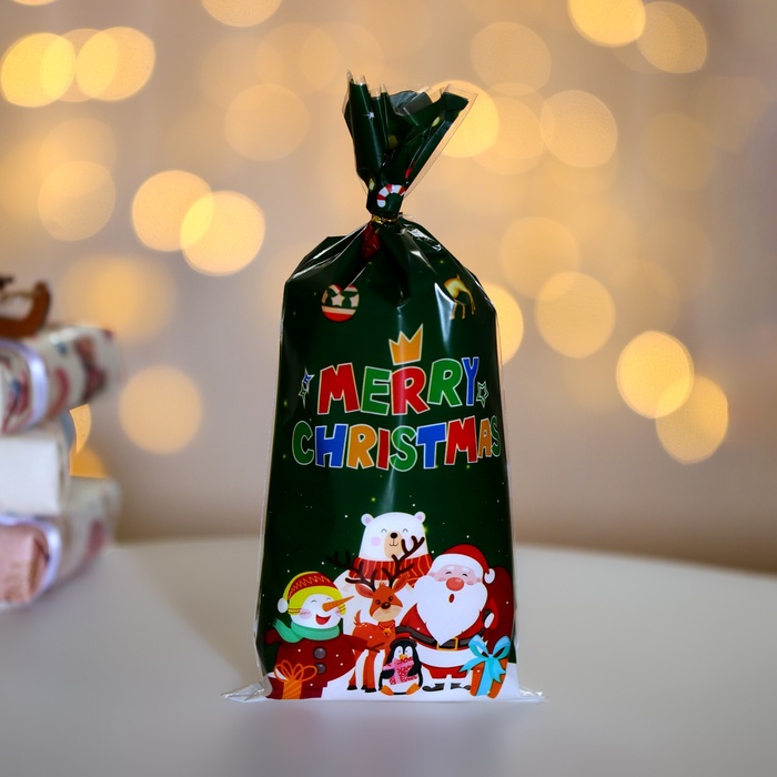 Пакет полиэтиленовый подарочный «С Рождеством!», с завязками, 15×23 см