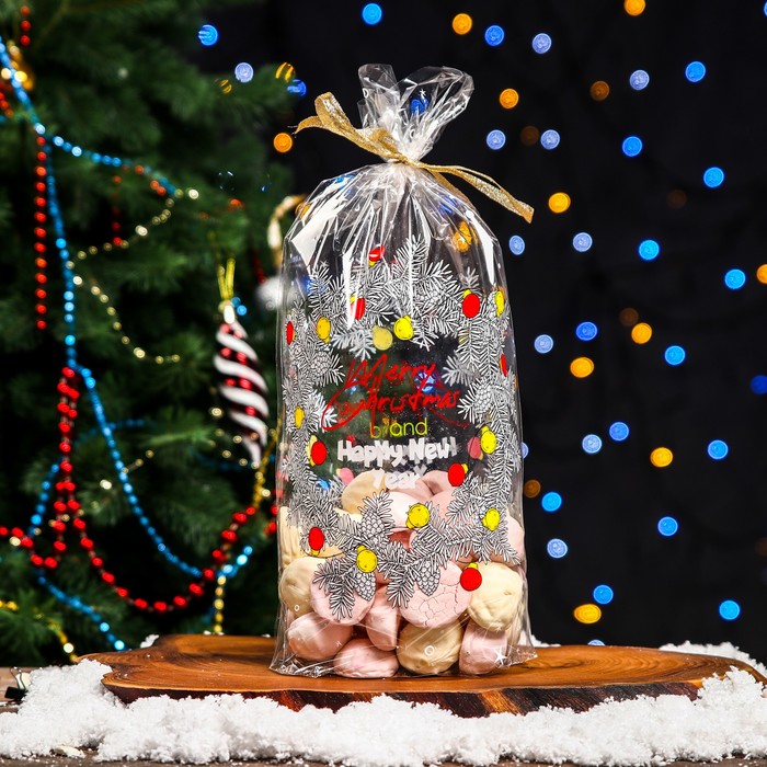 Пакет новогодний фасовочный БОПП, с донной складкой, «Венок» 20×35 см