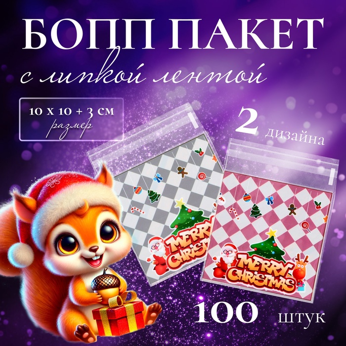 Пакет фасовочный БОПП, с новогодним рисунком «Марки», 9×19 см