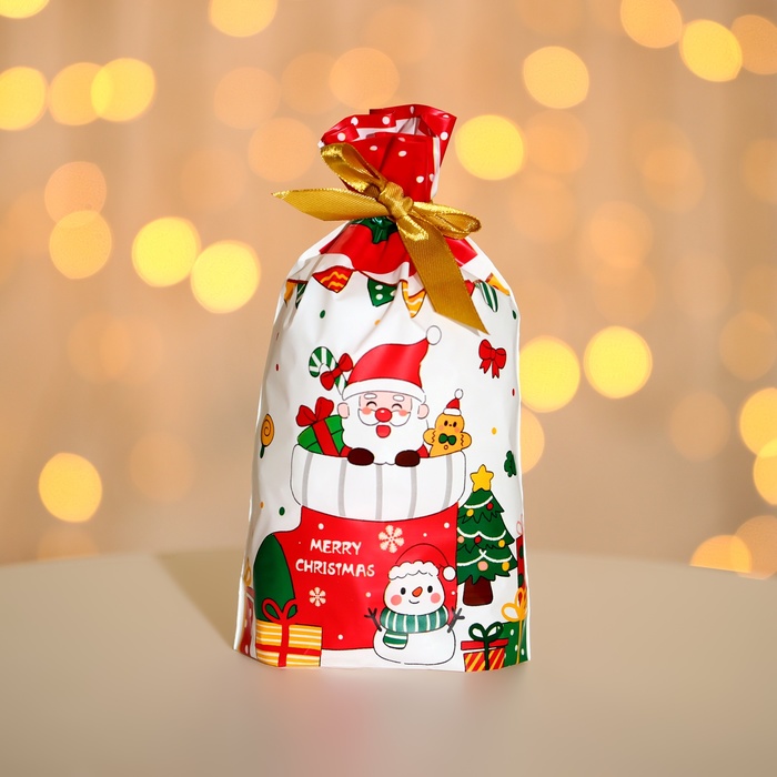 Пакет полиэтиленовый подарочный, с завязками "Новогодний носок", 15х23см.