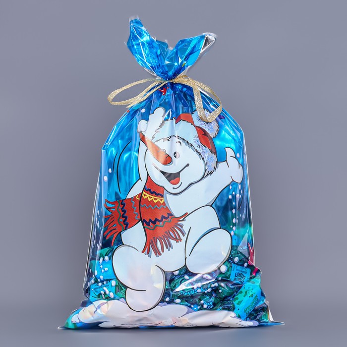 Пакет подарочный «Снеговик» 25×40 см, цветной металлизированный рисунок