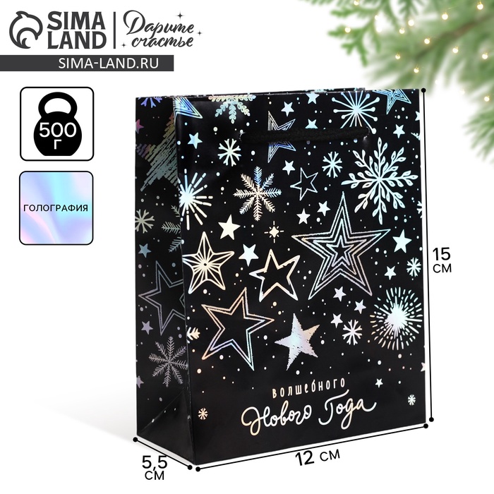 Пакет голографический «Волшебного Нового года», S 12×15×5.5 см