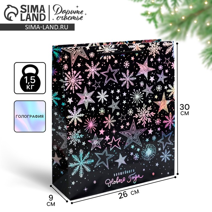 Пакет голографический «Волшебного Нового года», M 26×30×9 см
