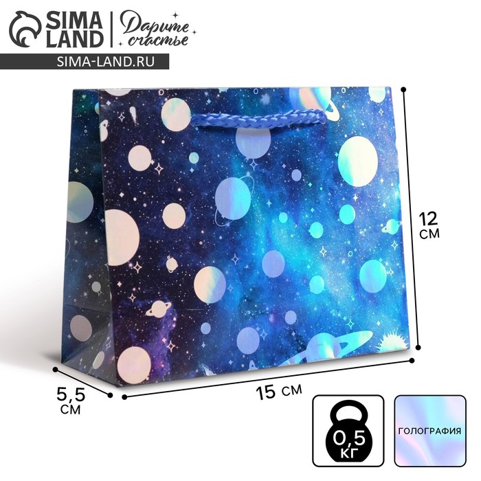 Пакет подарочный голографический, упаковка, «Космос», 15 х 12 х 5.5 см