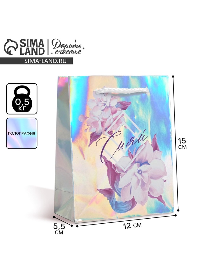 Пакет подарочный голографический, упаковка, « Сияй», 12 х 15 х 5.5 см