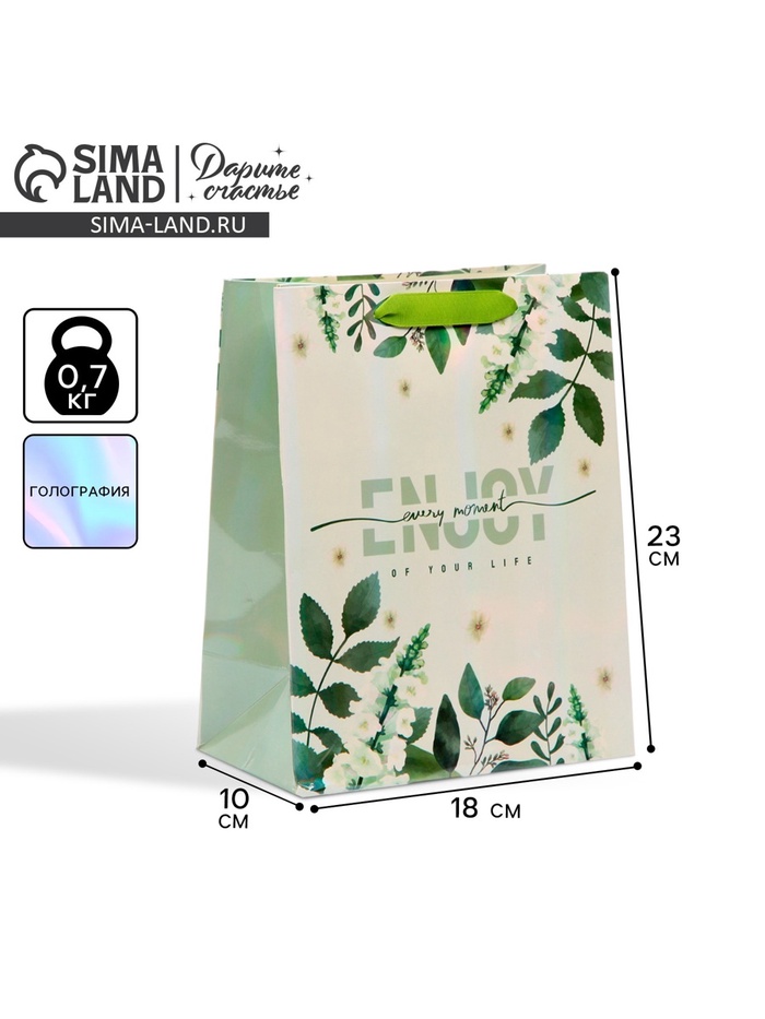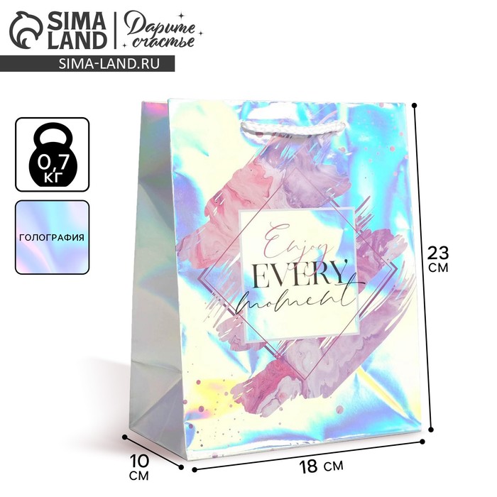 Пакет подарочный голографический, упаковка, «Enjoy every moment», 18 х 23 х 10 см