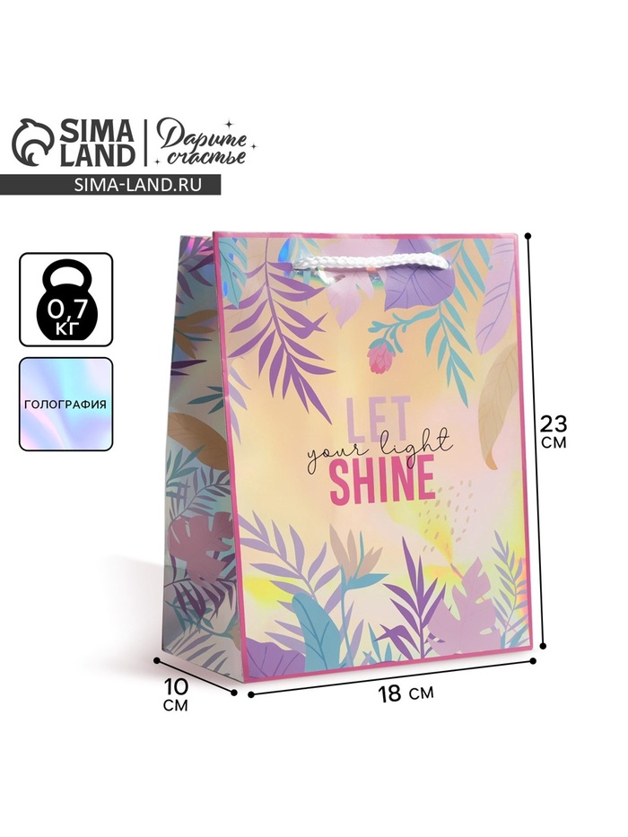 Пакет подарочный голографический, упаковка, Let your light shine, 18 х 23 х 10 см
