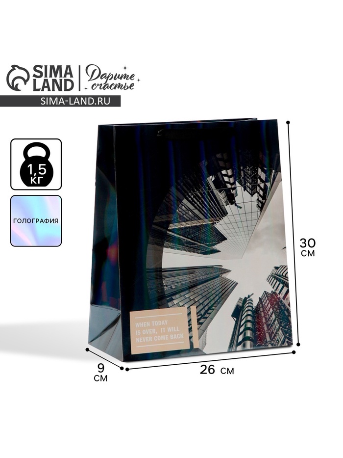 Пакет подарочный ламинированный, упаковка, «Небоскрёб», радужная голография, М 26 х 32 х 12 см