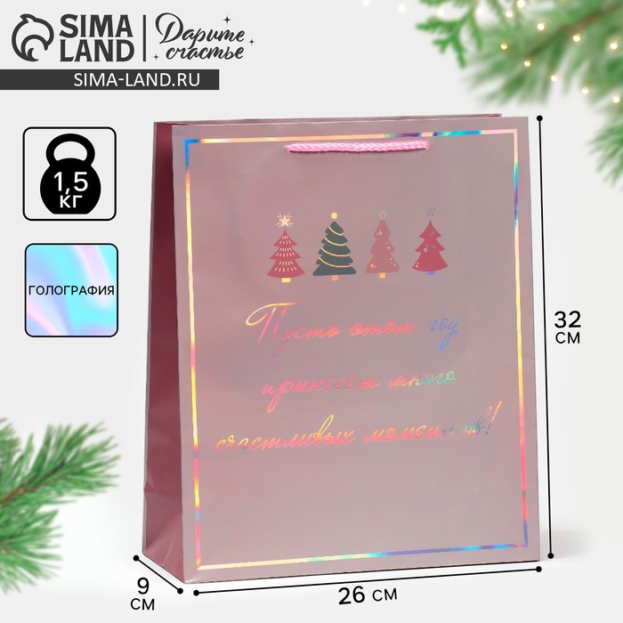 Пакет голографический «Моменты», 26 х 32 х 9 см