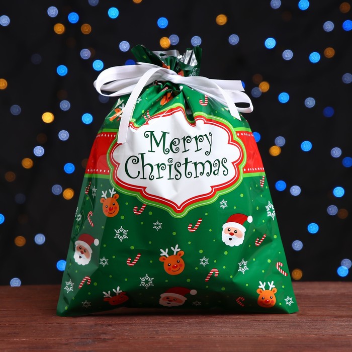 Пакет подарочный с завязками, «Счастливого рождества», 24×32 см
