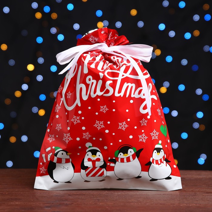Пакет подарочный с завязками, «Пингвины», 24×32 см