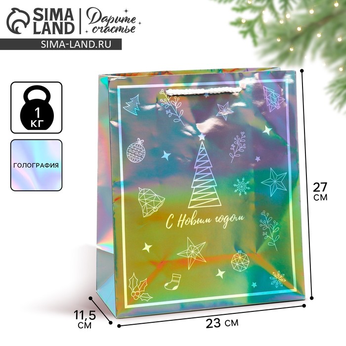Пакет голография «С Новым годом», MS 23 х 18 х 10 см