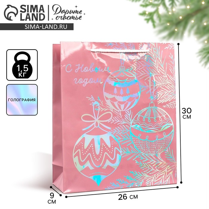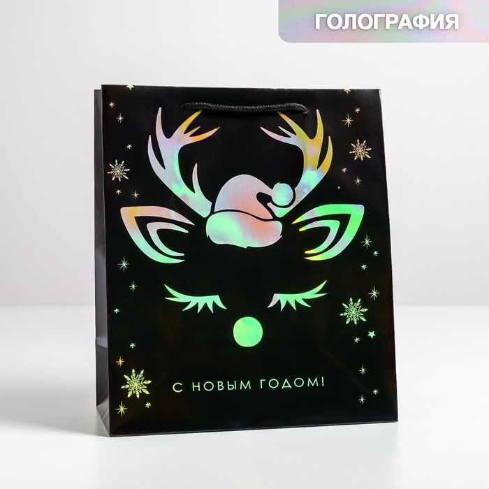 Пакет голография «Новый год», ML 23 х 27 х 11.5 см