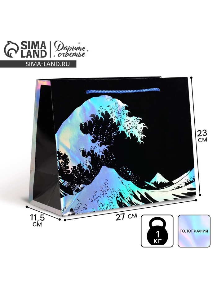 Пакет подарочный голографический, упаковка, The sea, 27 х 23 х 11.5 см