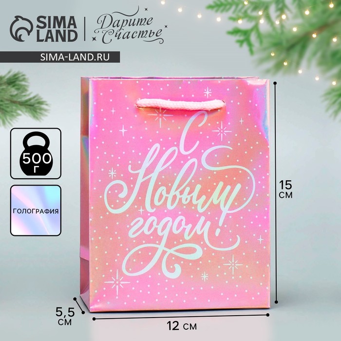 Пакет новогодний подарочный голографический «Нежность», S 12 х 15 х 5.5 см