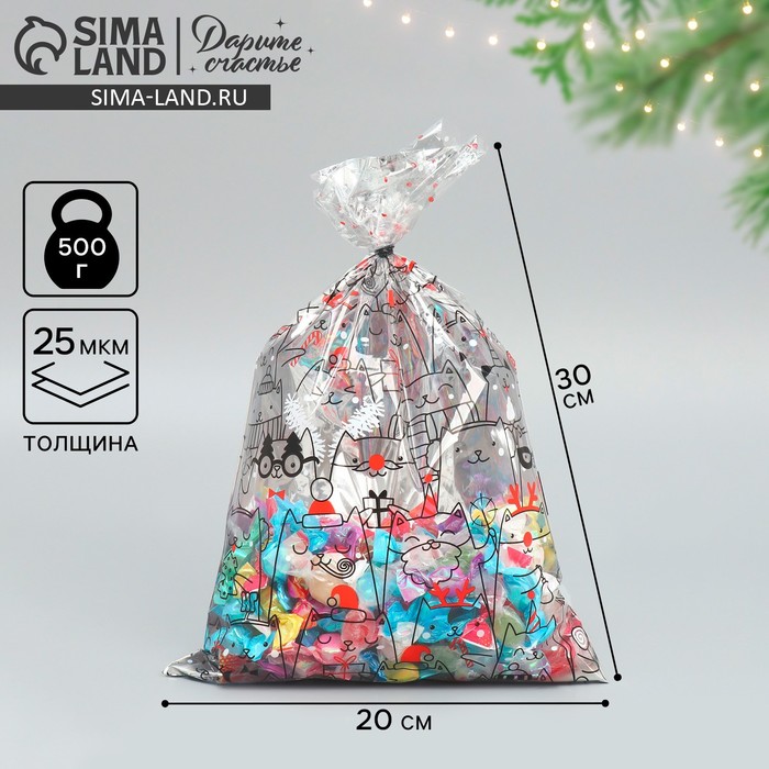 Пакет подарочный новогодний пластиковый «Киса», 20 х 30 см