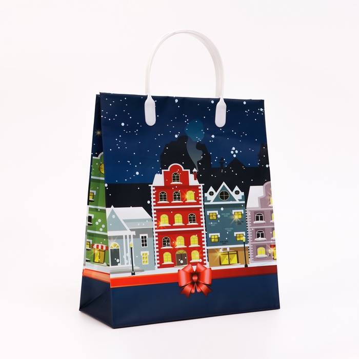 Пакет новогодний «Новогодний городок» мягкий пластик 26×23 см
