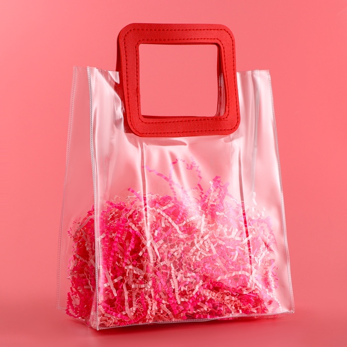 Пакет подарочный из ПВХ, красный, 26.5×23×12 см