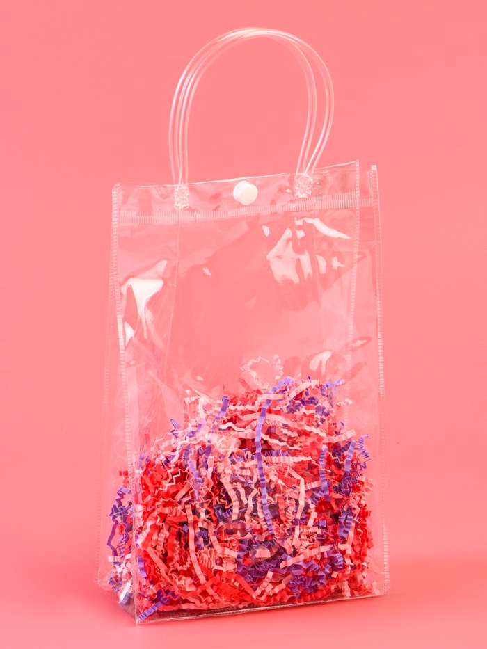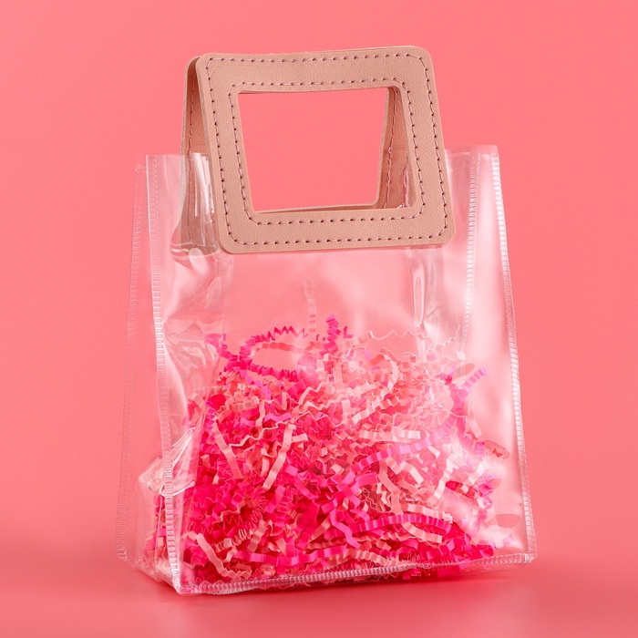 Пакет подарочный из ПВХ, розовый, 17×15×8 см