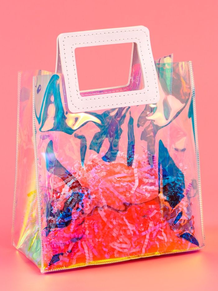 Пакет подарочный из ПВХ, иридисцентный, белый 20×18×10 см