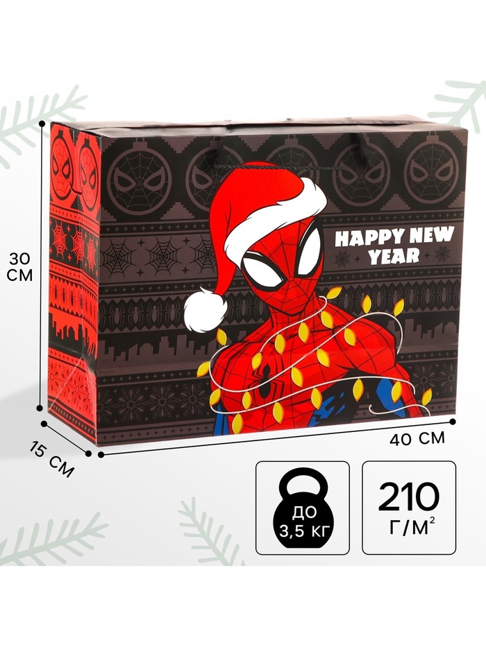 Пакет-коробка Happy New Year 15×40×30 см, Человек-Паук