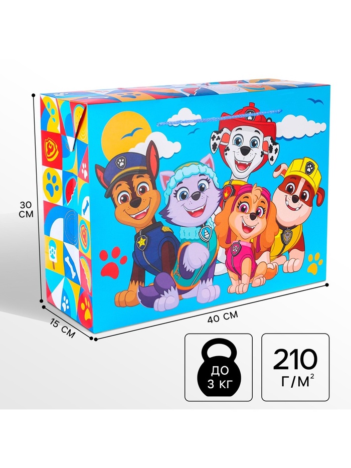 Пакет подарочный-коробка, 40 х 30 х 15 см, упаковка, Щенячий патруль