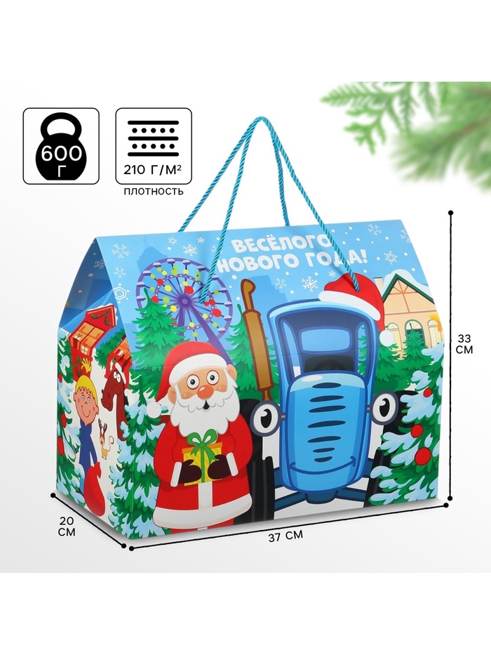 Пакет подарочный-коробка новогодний «Весёлого Нового года!», 37 х 33 х 20 см, Синий трактор