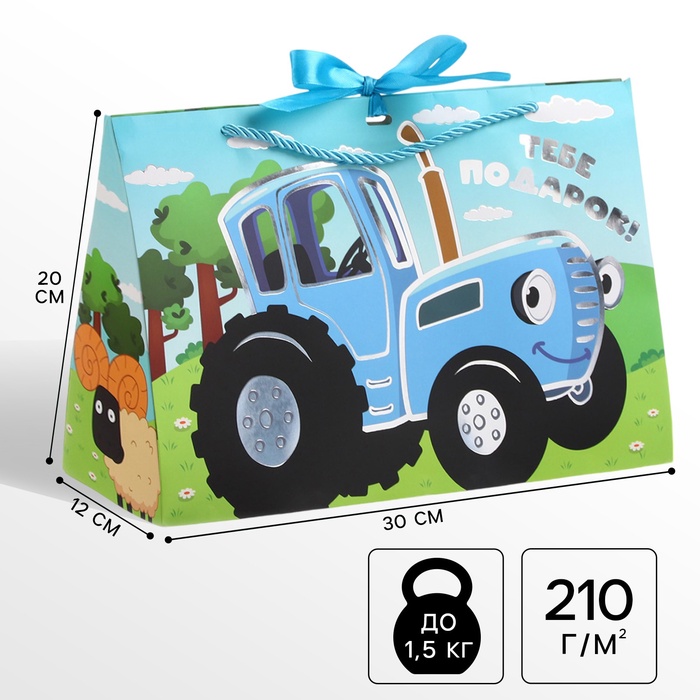 Пакет подарочный-коробка с тиснением, Синий трактор, 30х20х12 см