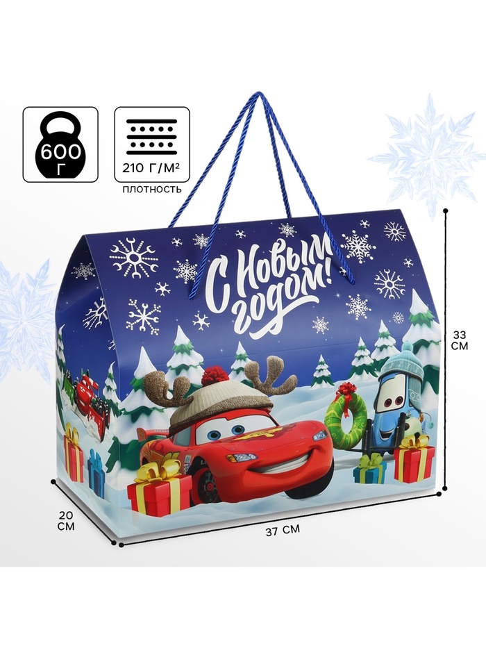 Пакет подарочный-коробка, «С Новым годом», 37 х 33 х 20 см , Тачки